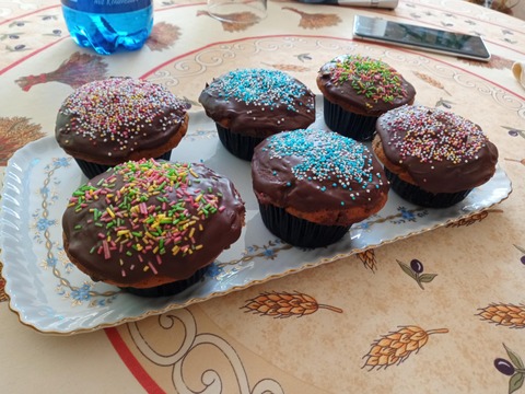 週一でお邪魔しているEさんち。この日のおやつはチョコマフィン、ガッツリです。毎回おやつを用意してくれるので、私も小さな手土産を持って行くんだ···