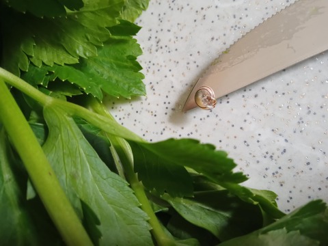 先日買った新鮮なセロリから・・・カタツムリ?の子供が・・・びっくりしたー!!ちゃちゃっと洗って食べた翌日で焦ったよ?これからは念入りに洗わなく···