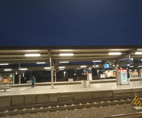 朝7時でまだ暗いドイツ群青色ってこれか!!凄く綺麗な深くて青い空乗り換え駅にて車内からで綺麗に撮れなかったけど、ライン川沿いをずーーっと走るI···