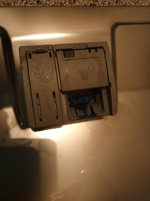 新しい食洗器を買って2年半経過!!以前にもあったけど、洗い上がった後、洗剤を入れる場所の蓋は開いてるはずなのに開いてない。開けたらこんな感じ ···